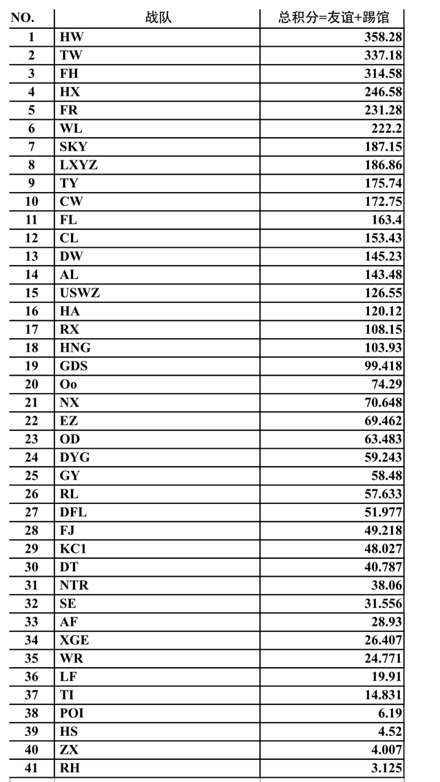 第一轮报名资格:7、8、9月份友谊积分合并后,排名前24的战队。